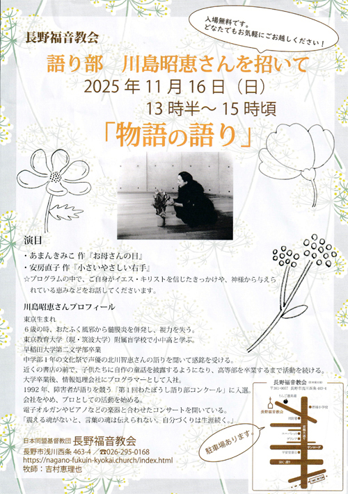 とても素敵な語りで、思わず引き込まれてしまいます ぜひご参加下さい