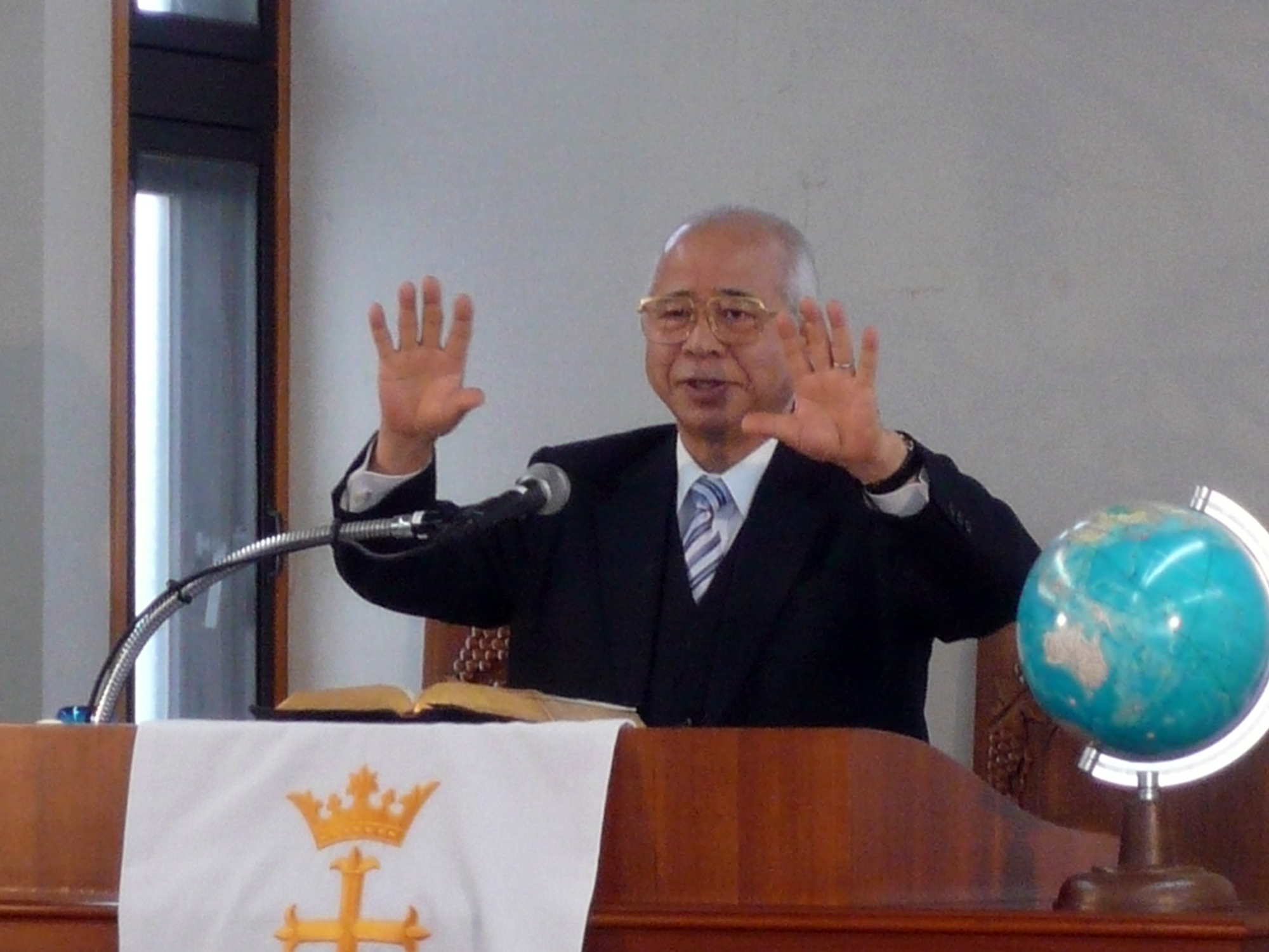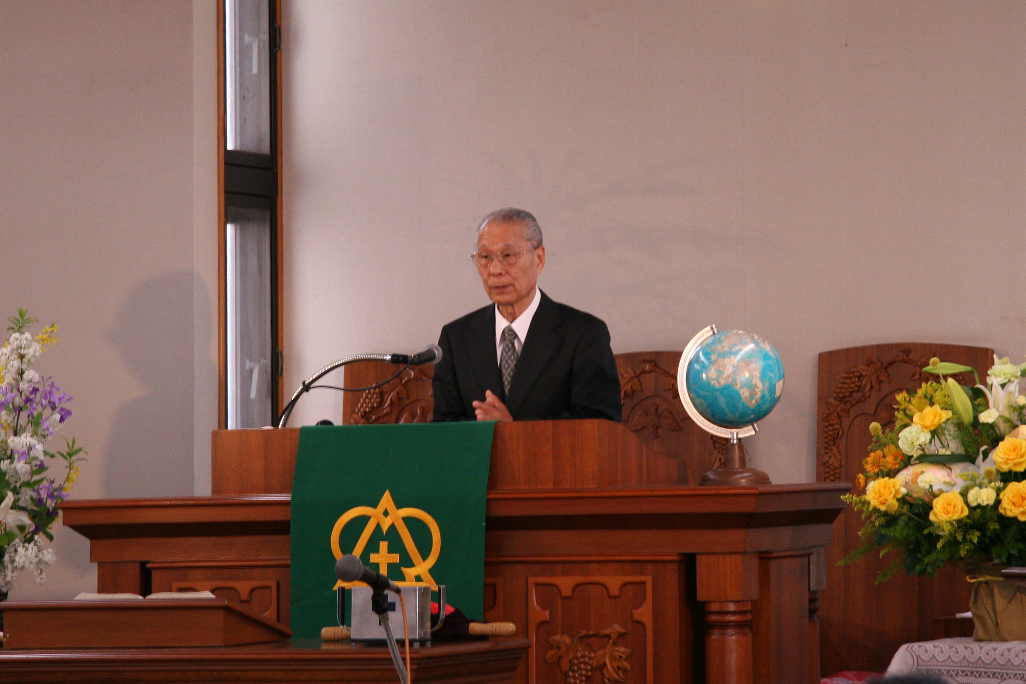 岩崎喜太男師(元太平洋放送教会支配人)*1995年10月15日新会堂献堂6周年宣教35周年記念礼拝